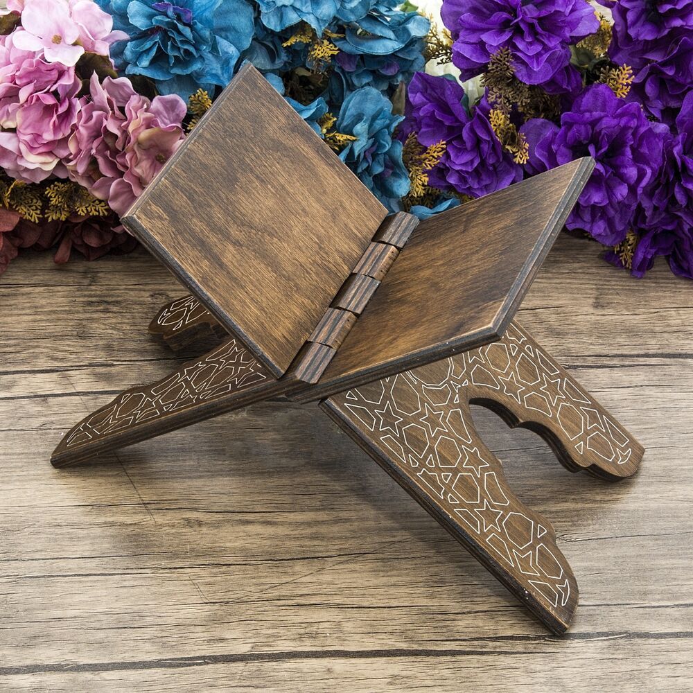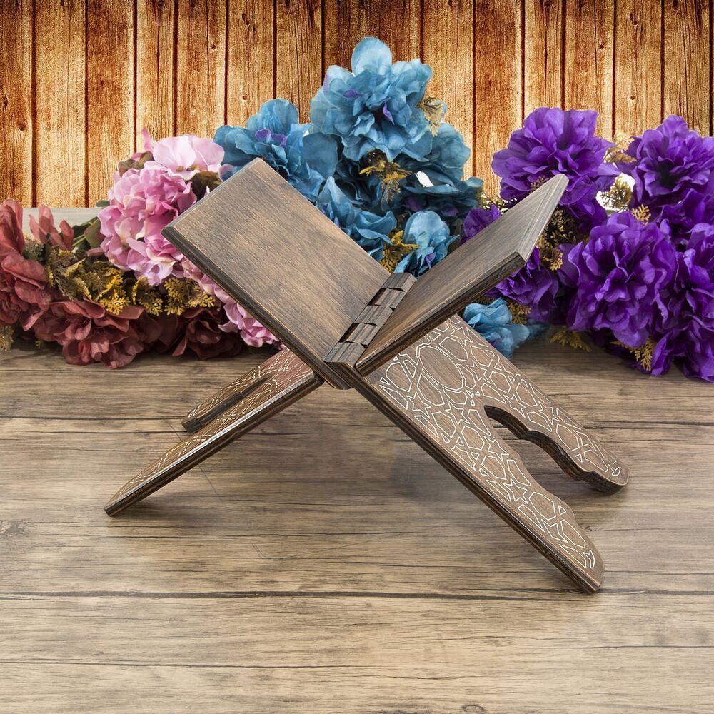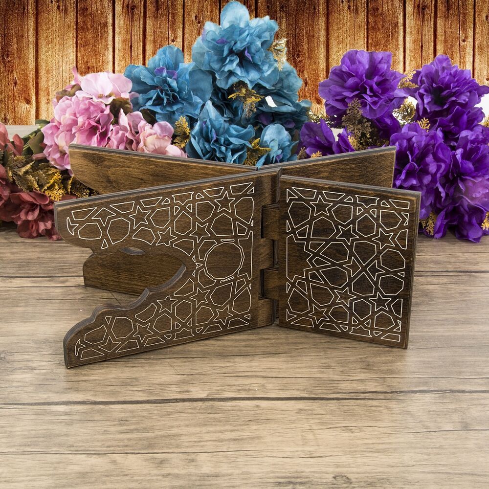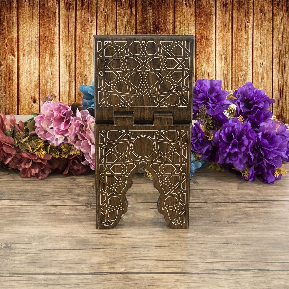 AK26 Ahşap Kitaplık ve Kuran Rahlesi 35*17 cm Rumi Desenli Kahve