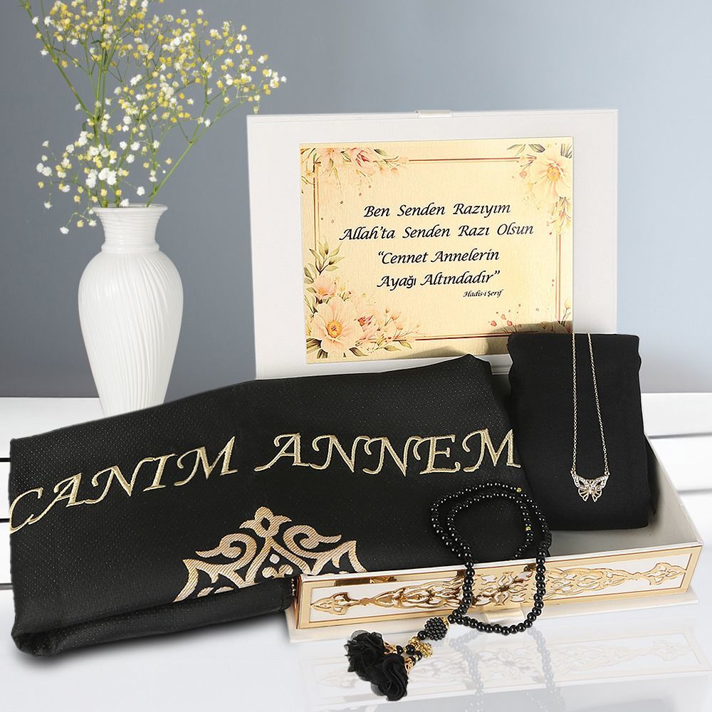 Canım Annem Lüks Kutulu , İsme Özel Seccade, Pamuklu Şal, İnci Tesbih, Kolye (27*19.5 cm 800 gr)
