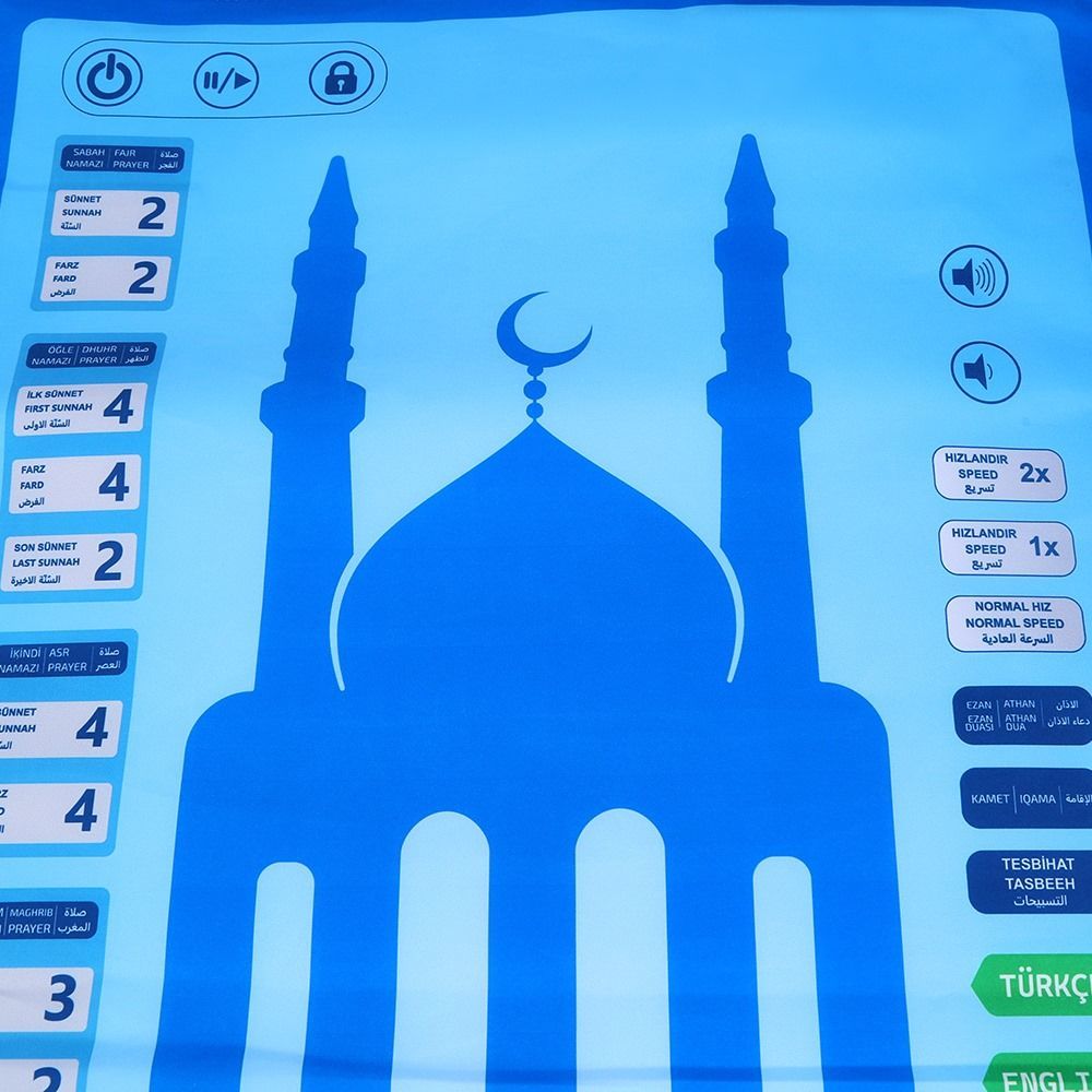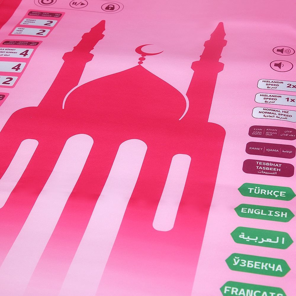 ZHD1 Çocuklar İçin Sesli Konuşan Namaz Kıldıran Seccade (7 Dil Seçeneğiyle) Mavi-Pembe