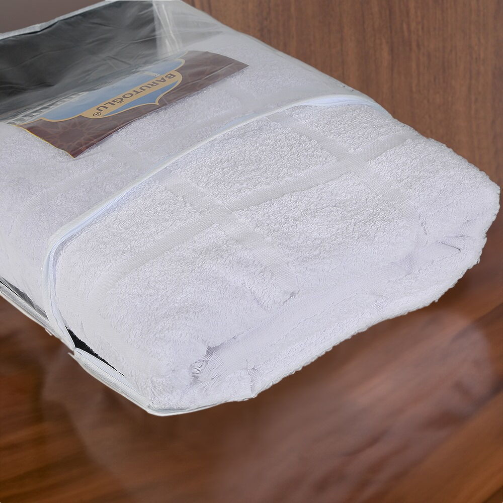 Düz Beyaz Pamuklu iplikten Desensiz olarak üretilmiş İhram Modelidir.